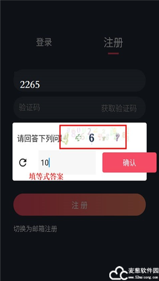 3、获取验证码会有一个简单的问题判定你是不是机器人,回答正确以后就会收到验证码了。