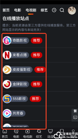 3、下滑到底部,拥有多个播放源提供选择,都是可以播放的。
