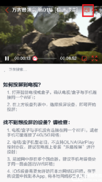 4、在视频页面右上角点击【TV】即可完成投屏。