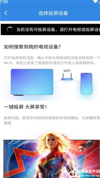 3、大家需要将投屏设备和手机连在同一网络下,即可搜索进行匹配。