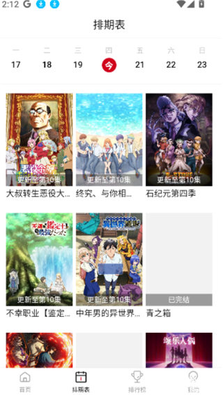 3、排期表内从周一到周日,每天都有当天的更新的番剧。