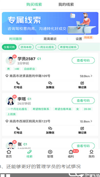 2、在【购买线索】页面可以看到最新的学员报名情况。