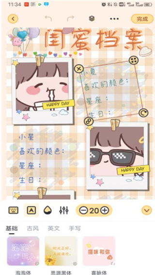 5、比如咱来一个闺蜜的,点击即可开始编辑。