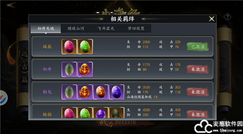 2、集齐多个图鉴后,还可以激活图鉴的羁绊效果,会再次额外增加属性,比如初开天地,诞辰激活后可以增加一定的生命、攻击、防御以及破甲。