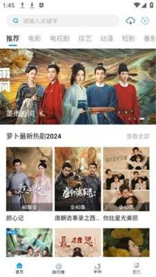 萝卜影视手机版在界面设计上虽然没有那些繁杂的功能,但是每一个板块都是清晰可见,使用起来也是非常的简单,想要查找视频的话就在搜索框,想要聊天的话可以打开弹幕。