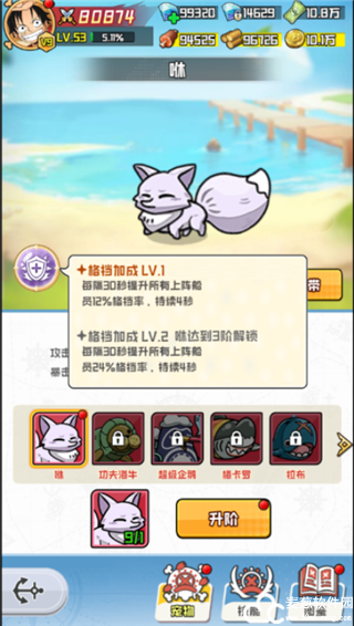2、比如激活这个宠物咻,可以提供一定的加成,每隔30秒提升所有上阵船员12%格挡率,持续4秒。
