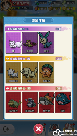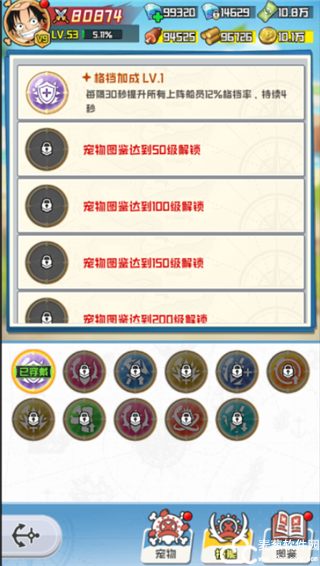 3、每激活一个宠物在图鉴详情页也会提供加成,比如全体船员暴击+6
