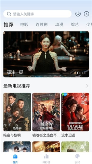 1、打开软件后,首页推荐板块都是时下最新的电视剧集,暗夜与黎明、流水迢迢等,大家可以任意选择。