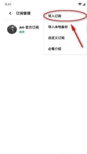 4、大家也可以手动导入想要的订阅源,在【订阅管理】点击右上角的三条杠,选择【导入订阅】