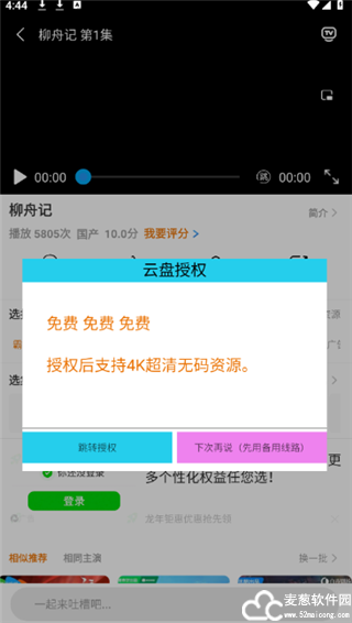 4、找到喜欢的视频后,点击授权即可开始播放。
