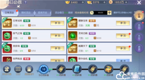 2、每日必做里有一些日常活动等待着大家挑战,如炼气之海、灵将古殿、威震天下等。