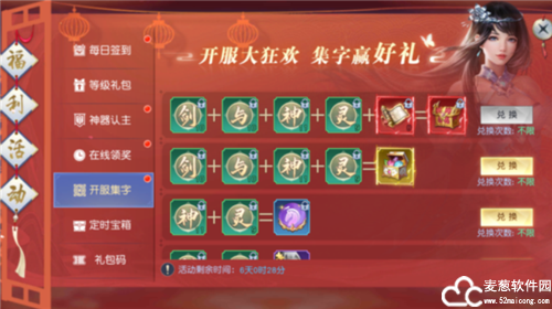 3、超多福利活动可以积极参与,开服大狂欢,集字赢好礼。