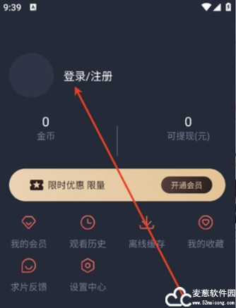 1、大家在麦葱软件站下载打开后,首页会有很多的精选推荐可以直接播放,想要登录的朋友点击右下角【我的】