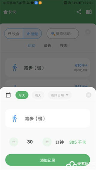 3、每天将咱们的运动数据记录一下,比如今天慢跑了30分钟,消耗了多少热量。