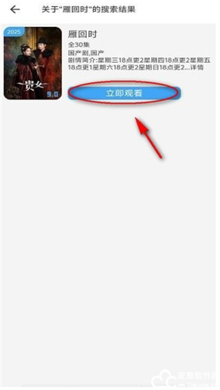 2、比如我想看雁回时,直接进行搜索,就可以快速匹配资源,点击【立即观看】