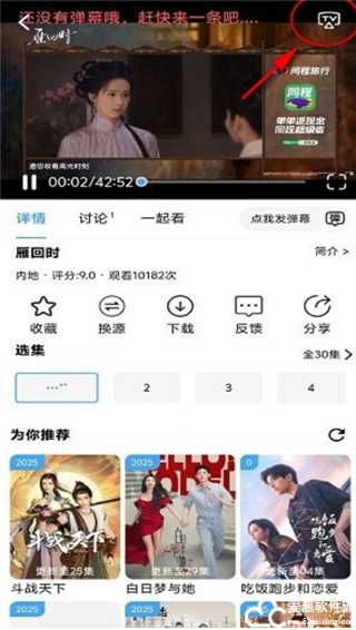 3、如果觉得小屏幕追剧不过瘾,点击播放页面的【TV】,投屏到家里的大电视上。