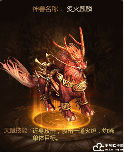 形态说明:可召唤炙火麒麟,口吞炙火远程攻击敌人。