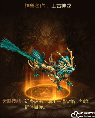 形态说明:可召唤上古神龙,远程攻击,群体扇形攻击前方敌人。