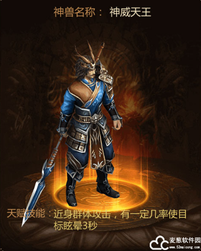 天赋技能:天罚,近身群体攻击,有一定几率使目标眩晕3秒。