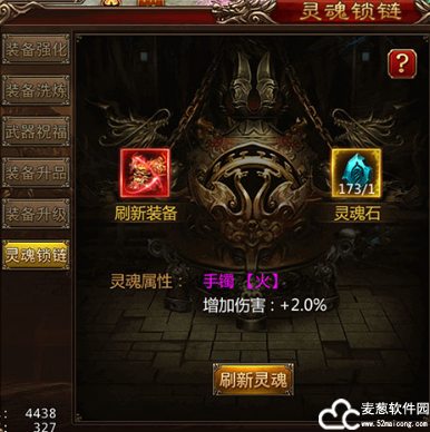 金减免物理伤害;木反弹伤害;水忽视防御;火增加伤害;土减免魔法伤害。当然,灵魂锁链除了需要对应属性激活,还需要对应部位的装备。戒指激活武器、项链;项链激活戒指;武器激活勋章;手镯激活鞋子、衣服;头盔激活腰带、手镯;腰带激活头盔。当对装备的灵魂属性不满意可以在锻造界面对灵魂锁链进行灵魂刷新操作。放入装备,且材料足够,点击重铸,则消耗对应的材料,技能属性/技能属性值随机变化。
