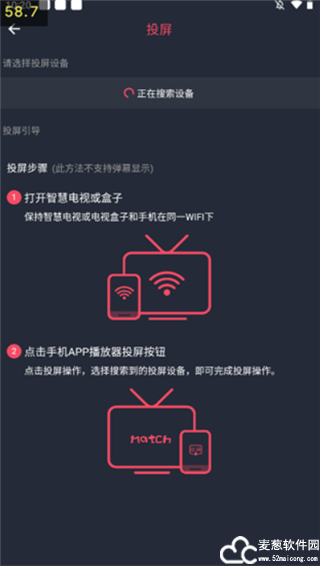 3、系统会自动搜索可以投屏的设备,大家只要保证电视和手机处于同一网络环境下。