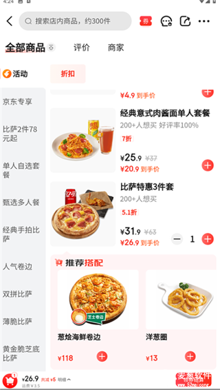 4、进入 店铺后,可以挑选商品,比如经典意式肉酱面、披萨等,折扣力度还是挺大的,选择好以后,点击【领卷结算】