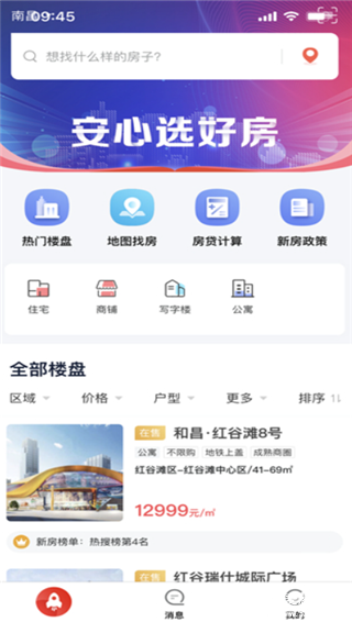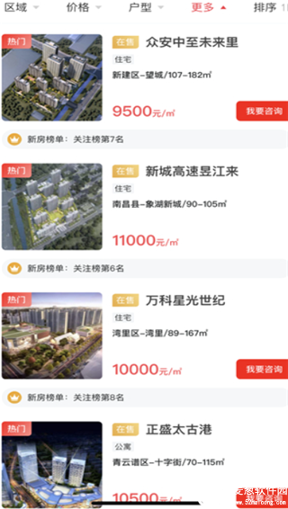 3、大家可以根据区域、价格以及户型选择喜欢的房屋。