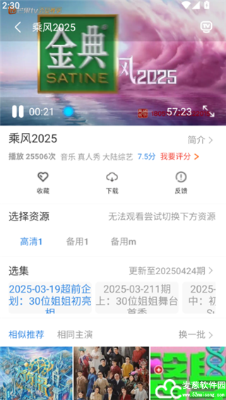 2、比如最近在看乘风2025,点击即可播放,多个播放源任你选择。