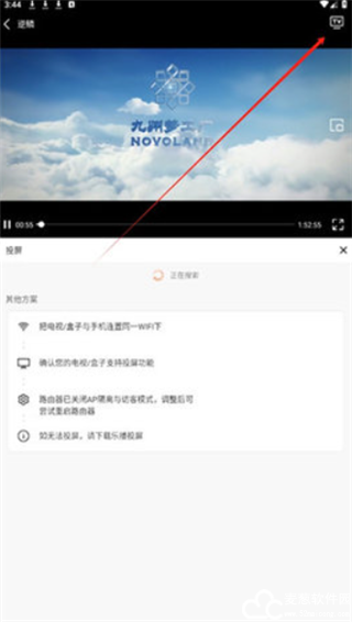 4、在播放页面的右上角可以开启投屏,大家只要保证手机和电视处于同一网络。