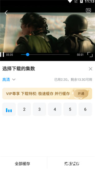 4、选择下载的集数即可开始缓存,不过需要会员哦。