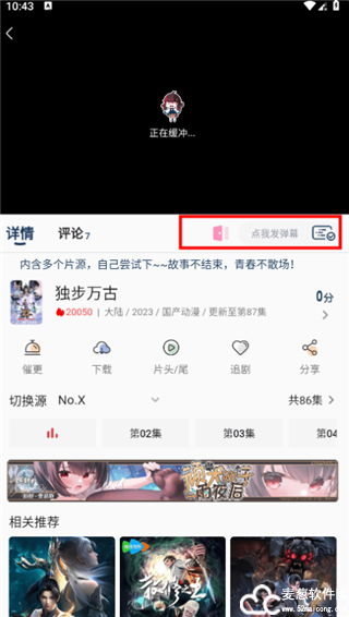 3、比如我想看独步万古,点击即可进入播放页面,追番的同时还能发送弹幕。