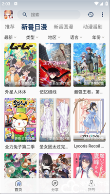 1、大家打开软件后不需要登录即可看到精彩推荐,新番日漫、国漫以及剧场动漫等统统免费点播。