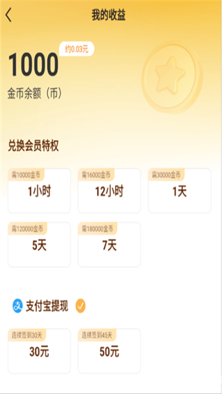 3、福利中心里每天签到都可以领取金币,金币可以用来兑换会员使用权限,或者直接提现。