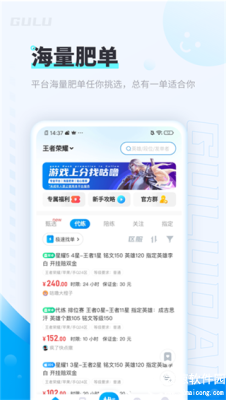 平常爱玩游戏的朋友们都喜欢追逐里面的一些荣耀时刻,比如爱打王者荣耀的朋友们,都想成为段位最高的荣耀王者试试,或者打一个国服英雄拥有一个炫酷的标记,不过自己的技术达不到这样的要求,那么不妨试试咕噜代练app官方版找一位大神玩家帮你完成梦想,领取到对应段位的丰厚奖励,并且上了荣耀王者后必须要发在自己的朋友圈,并配文这上个荣耀不是轻轻松松吗。哈哈哈,要的就是这样的感觉。平台最大的优势就是用户可以根据自己的需求寻找代练,交易过程都是安全有保障的,专业客服从中协调,帮助大家和职业代练选手能够实现公平交易。