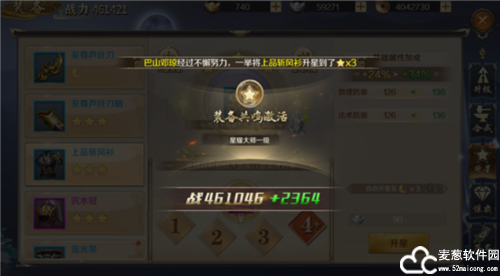 装备提升可以分为升级、合成、升星、镶嵌、签名等五种方式。每种方式都有可以对战斗力以及一些属性的提升。所以,千万不要佳丽三千,却独宠某一人,一定要做到雨露均沾,才能使自身能力最大化。装备颜色集齐整套也可以为个人叠加不俗的属性。绿色,蓝色,紫色,橙色,红色套装,只要集齐一种颜色的套装,就能激活,激活也可提升大量战力和属性。