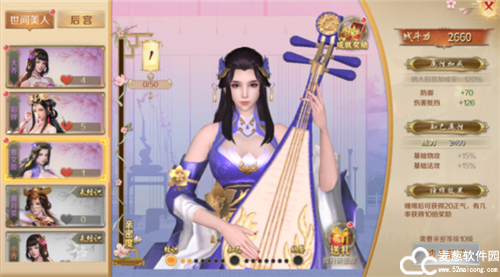 后宫系统里有非常多三国里的美人,里面的人物可以通过完成后宫剧情来与她结实,不仅很养眼,还可以结识新的人物可以提升相应的战力哦。如果和人物亲密度达到10级还可哪娶入后宫,后宫可以缠绵哦,缠绵一次可以获得经验值。