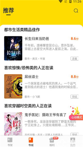 2、书城推荐版块里都是时下热度比较高的精品佳作,方便读者选择。