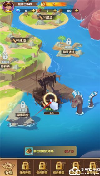 2、开始出行前,我们需要修复自己的海贼船,为出行做准备。