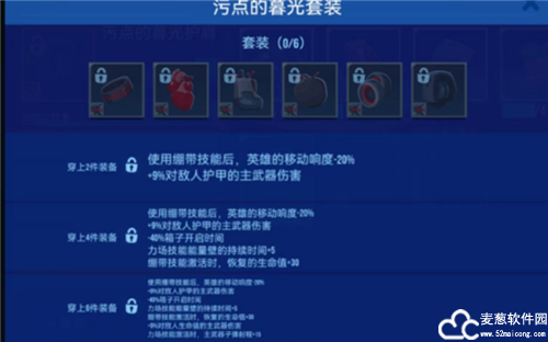 污点还有专属的暮光套装,当穿上6件套装,会触发套装效果,增加射程和伤害,恢复生命值。