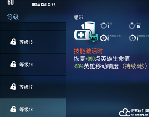 2、绷带技能激活时,恢复+70点英雄生命值,后续随着技能等级提升,还可以增加恢复的生命值点数,以及减少英雄的移动响度