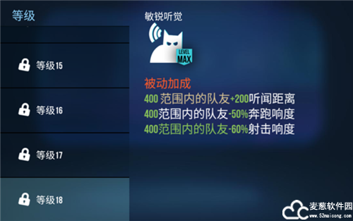 英雄达到神话段位时,还可以解锁敏锐听觉这个被动技能,主要作用是可以为范围内的队友增加听闻距离、减少奔跑响度、减少射击响度