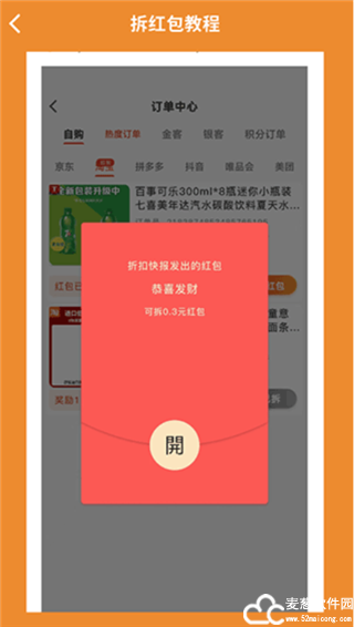 4、当你成功下单后,就可以获得一个惊喜红包,后续收货后可以得到相应返利。
