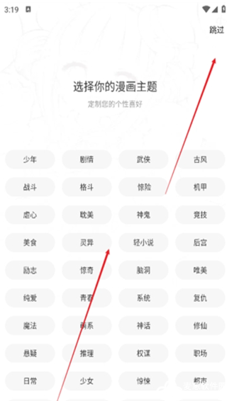 3、选择您的漫画主题,咱们将会为你量身定制您的个性喜好。