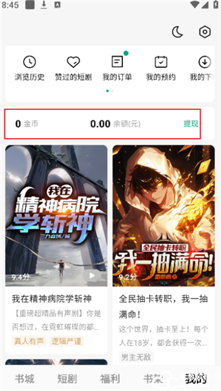 3、点击下方【我的】,可以看到你的余额,右边有一个【提现】