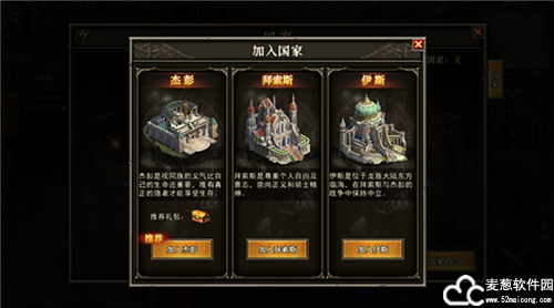 4、通过新手指引后,加入一个国家,每个国家的信念不同。
