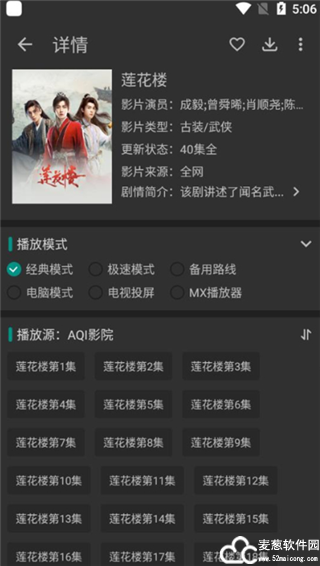 2、比如我想看这部成毅主演的莲花楼,点击即可进入详情页,选择集数开始播放。