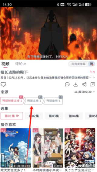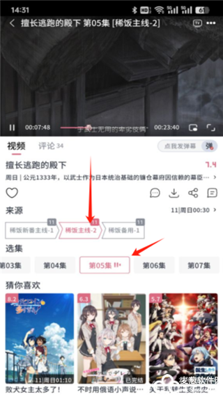 2、比如我想看这部擅长逃跑的殿下,进入直接就是播放页面,如果无法播放的话点击下方的来源。