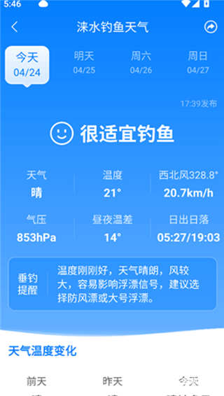 如果近期有什么恶劣天气即将到来的话,当准天气官方正版还会采用预警方式,提前告知大家需要做好哪些方面的防备。特别是平常爱钓鱼的朋友们,天气因素还是有一定影响的。