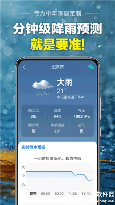 4、及时、精准预测所在位置未来2小时每分钟降雨变化,出门记得带伞;