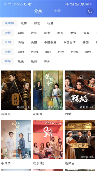 3、在影视分类里,大家可以根据题材进行选择,剧情、古装、历史、都市等应有尽有。